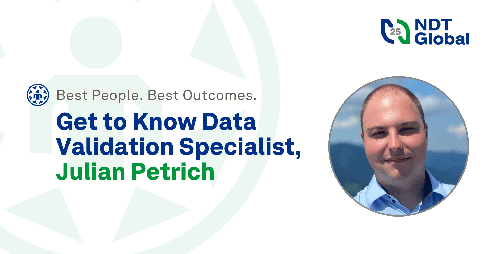 My name is Julian Petrich, I’m 27 years old, and I am a Data Validation Specialist at NDT Global. I have approximately eight years of experience in Non-Destructive Testing (NDT), with a focus on ultrasound technology, signal processing, pipeline inspection, and inspection tools,